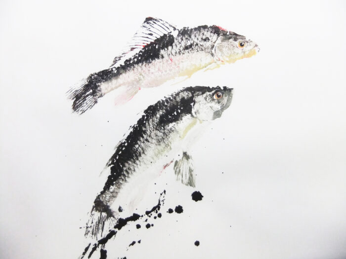 I-An Chen et Irène Petit vivent à Saint Thibaud de Couz et Chambéry. Elles sont toutes deux peintres, adeptes de la peinture à l’encre de Chine, elles utilisent des supports différents pour aborder le domaine du chaos et de l’unité. Cette fois-ci, Irène Petit présentera ses nouvelles œuvres avec la technique du Gyotaku*1, tandis que I-An CHEN présentera une série de gravures issues de sa série de peintures, dans le style de la dynastie Song (960-1279).
